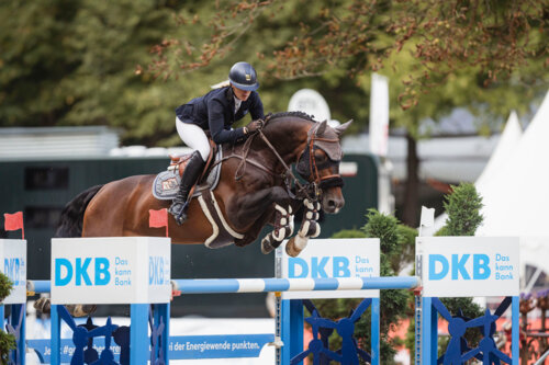Paderborn – Der dritte Tag voller Sonnenschein bei der OWL Challenge. Im sportlichen Highlight am Samstagnachmittag ertönte zur Siegerehrung, wie im Vorjahr, die niederländische Nationalhymne. Die junge Niederländerin Amanda Slagter überholte das restliche Starterfeld und siegte deutlich mit ihrem 11-jährigen Hengst Cornet Blue PS im Preis der Deutschen Kreditbank AG, dem Championat von Paderborn, das gleichzeitig als Qualifikation zum Großen Preis am Sonntag galt. Platz zwei ging nach Italien, an Lorenzo Argentano und seine 13-jährige Oldenburger Stute Dakota Blue Girl. Dritter wurde Stefan Naber aus Drensteinfurt mit seiner Stute Cyber Zirkeline Nrw. Die zahlreichen Zuschauer auf dem Schützenplatz sahen tollen Sport bei herrlichem Spätsommerwetter. Insgesamt gelang es 22 Teilnehmern strafpunktfrei im von Peter Schumacher gebauten Parcours zu bleiben.